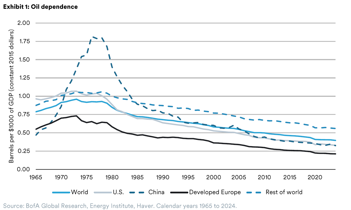 Despite all the challenges, a near-term resolution remains our base case, which suggests that this resilient global economy will avoid recession. Notably, the world is substantially less reliant on energy today than it was during prior conflicts. In fact, it requires about half as much oil to produce $1,000 of gross domestic product (GDP) today relative to the first Gulf War. In addition, the perilously critical role of the Strait of Hormuz in the global economy cannot be understated. This relatively narrow strait is responsible for the flow of 20% of global oil supplies and has been subject to the whims of the Iranian regime for the last 47 years. The fragility of that situation is, quite frankly, untenable and a resolution to this conflict, which includes the global economy no longer being held hostage to potential supply shocks by a hostile actor, is an enormously positive outcome.